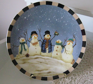 This is my snowman plate. I can't remember if I bought it or if it came from a friend. I love the snowy blue sky on it! I just don't care to see the snowy blue sky in my neck of the woods for a while!