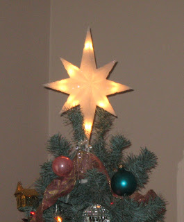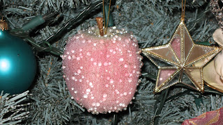 Lastly, my Christmas tree which stands in the living room. It is decorated in mostly pink, aqua, and white. I have some dolls and teddies around it while it awaits the presents. The angel topper which I've had for twenty years finally burnt out so until I find the right one to replace her with, I have topped the tree this year with a star.
