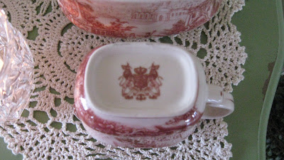 I have no idea where this pretty tea pot was made because the only stamp on it is this one, which really doesn't tell me much. It is more than likely produced in England or China. In any case, I love it!