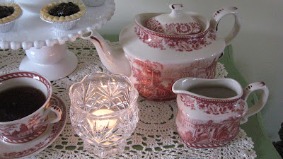 Today I am sharing one of my favourite things: red transferware! I absolutely adore red transferware and I have several pieces of it in my home. I love this tea pot which I found at Lillibet's in our local hospital's gift shop.