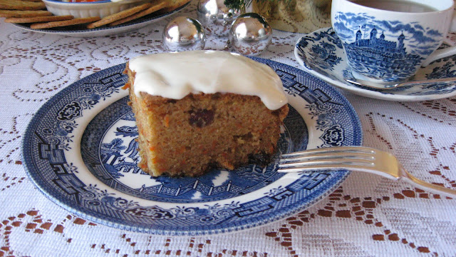 He isn't overly fond of carrot cake but he did enjoy a piece of this. I like to heat it up just a bit so the icing dribbles down the sides.