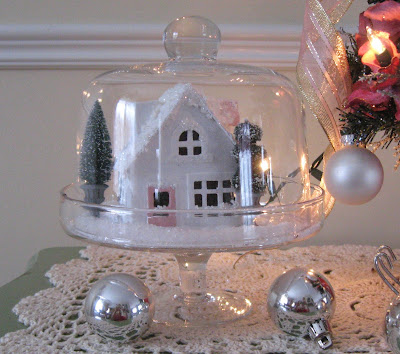 I painted this little paper mache cottage last week and decided to include it in my presentation today.
