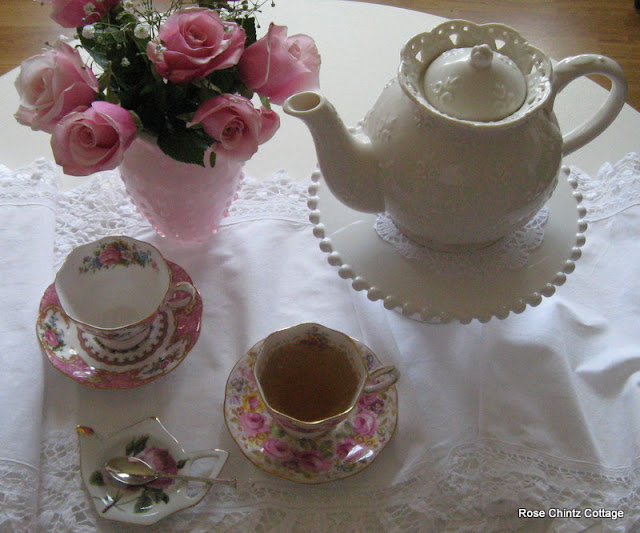 Thank you for stopping by to have tea with me. I wish you all a rosy pink weekend. Please stop by Beverly's at How Sweet the Sound to check out all her pinks.