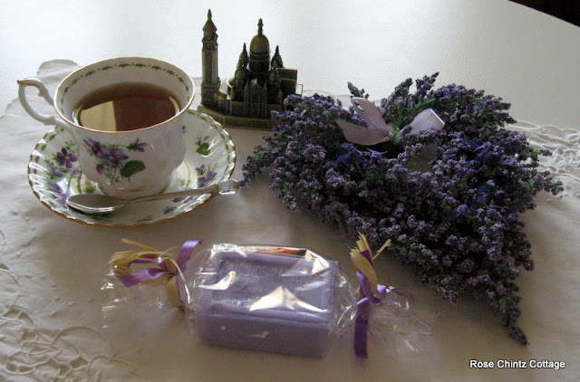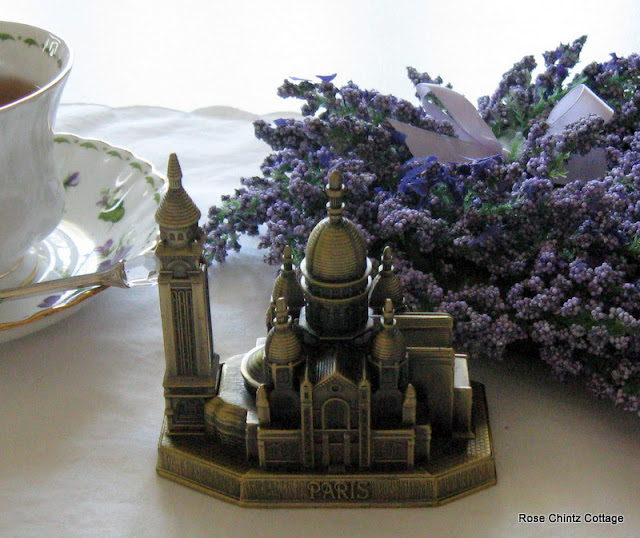 He had gone to France this past June and while there, he picked up a couple of things for me; a lovely cake of lavender soap from Provence, and a miniature replica of the church Sacre-Coeur in Paris.