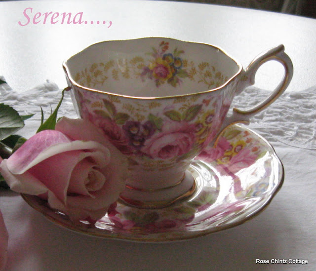 This lovely teacup is Royal Albert's Serena. Yes, Betty, I finally found one! Isn't she pretty?