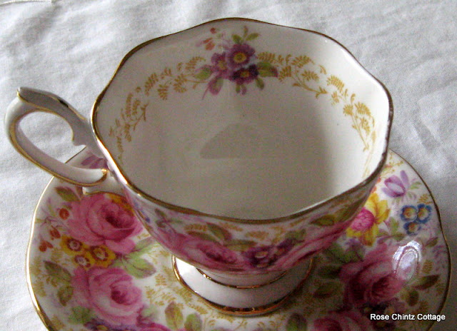 Some ladies love clothes, some love purses and shoes, others love jewelery, and so on! I have always loved pretty china! How about you? It just makes my heart go pitter-pat!