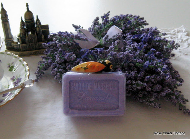 I wish you could smell this soap! It is exquisite! The little cicada came with it. Provence is known for them apparently. We also have them here on the Island. In case you have no idea what a cicada is, it is a tree cricket with a loud, shrill sound which we hear in August.