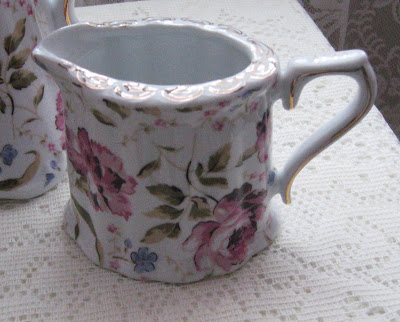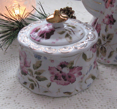 A few months ago, I had shared this pretty teapot with you. I really like the shape of the pot with its curvy handle, ruffled bottom, and pink roses sprinkled all over.