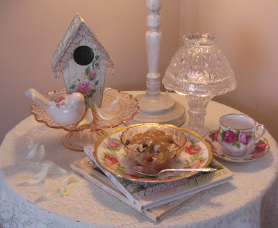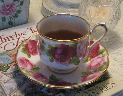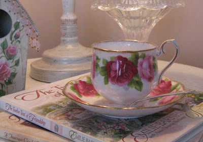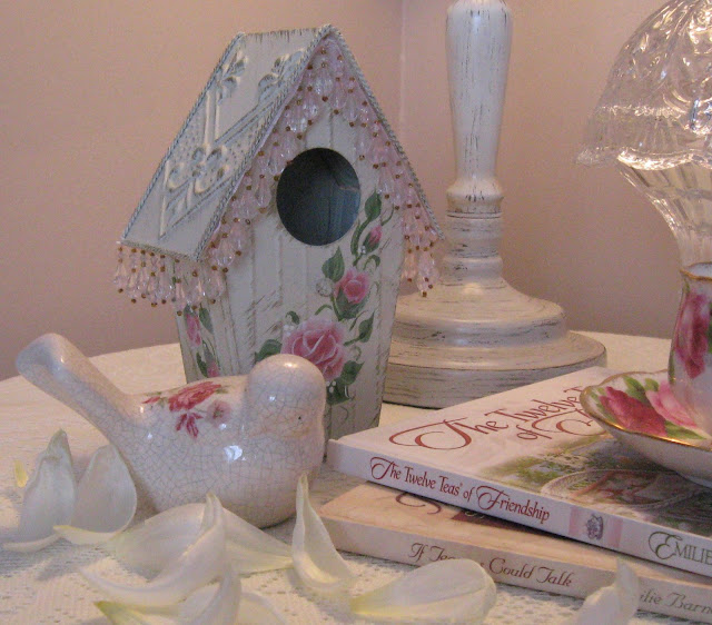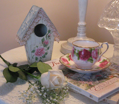 Today's tea is a share of some of the little things that bring me pleasure; like roses, pretty teacups, birdhouses, and books.