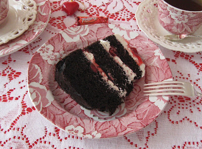 I have baked a Chocolate Torte for our tea today. Layers of rich chocolate fudge cake, whipped cream, and cherries; a delight to the eyes as well as the taste buds!