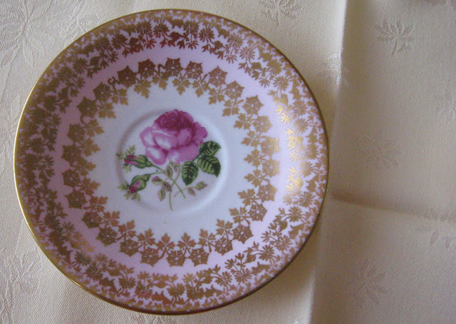 A rose in the center of the saucer too.