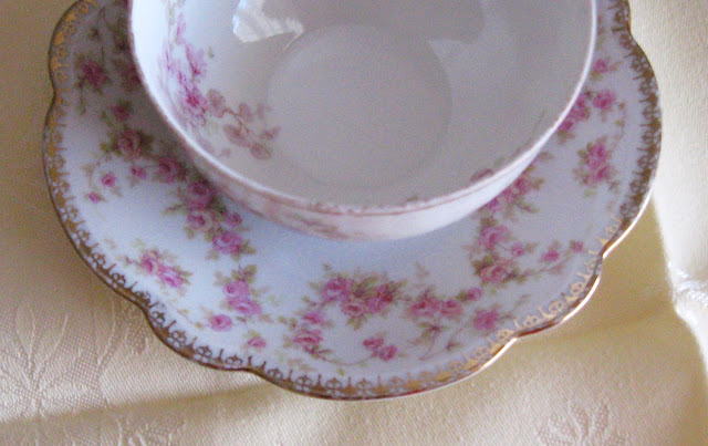 A mis-matched set I found at a yard sale. The lovely saucer is Bridal Rose made in Germany by Czech MZ Altrohlau. I love the scalloped edge and garlands of roses!