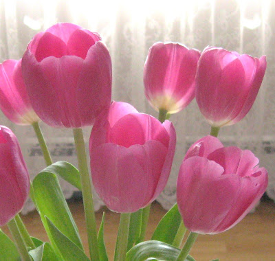 The supermarkets carry such an array of flowers this time of year. So many lovely hues! I chose these bright pink tulips. Tulips and Easter go hand in hand.