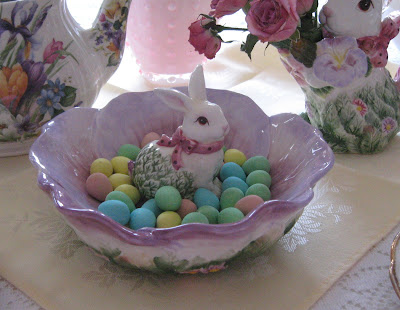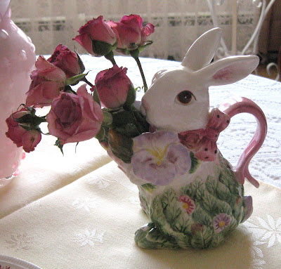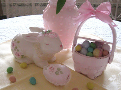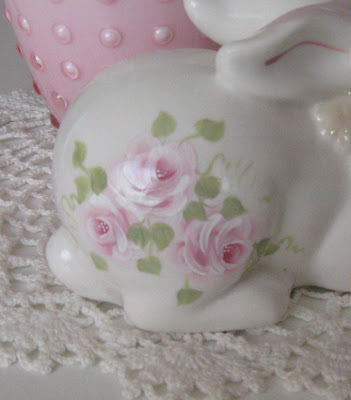 The sweet bunny with hand-painted roses, basket, and egg are all items I won from my friend Celestina Marie in her Spring Giveaway last year.