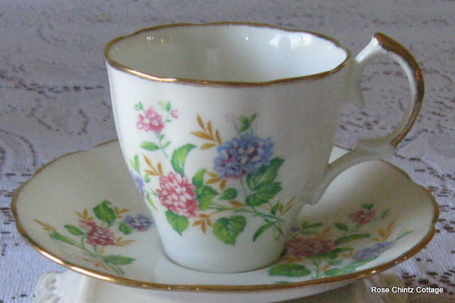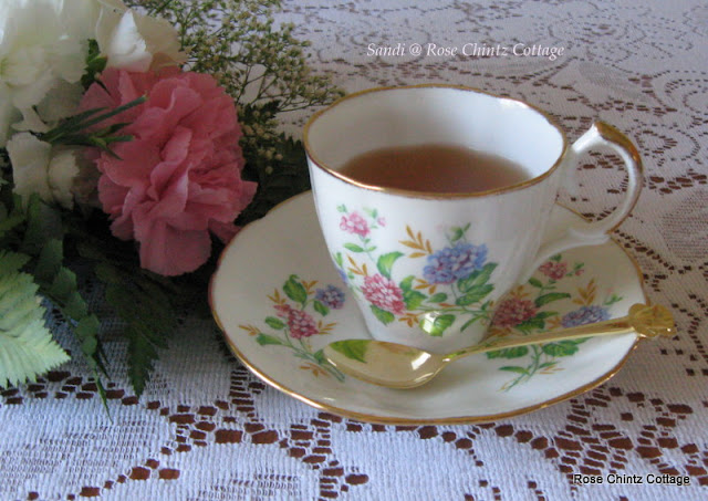 Deb often participates in my weekly tea parties and one week I had admired one of her pretty teacups which she had won at auction and guess what? She sent me the cup! Yes, she did.