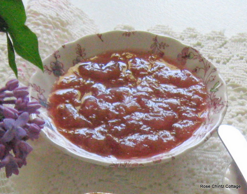 I have some rhubarb fresh from my DIL's garden and so I made up a batch of sauce to go with the biscuits. I always add just a bit of orange juice to the sauce to give it a wee bit more zing.
