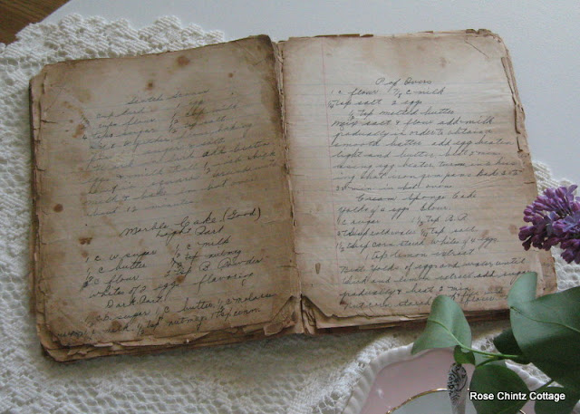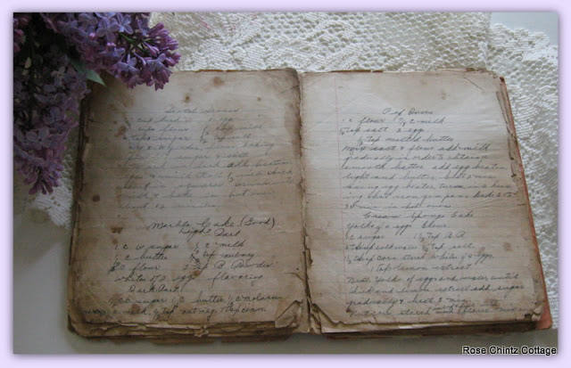 The pages which are in her own handwriting, are yellowed and very fragile. Most are soiled from the many years of baking and cooking her wonderful meals.
