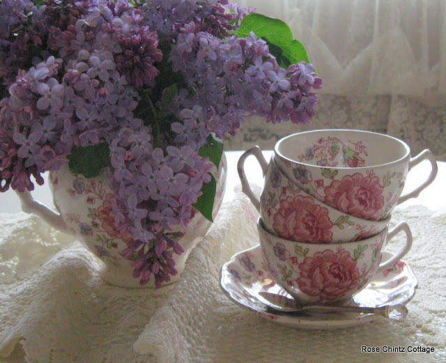 It's lilac time at Rose Chintz Cottage. Soon my roses will be blooming too....
