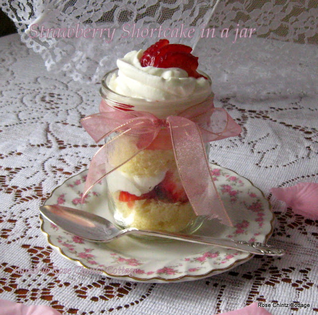 Strawberry Shortcake in a jar. I discovered this sweet treat at Yvonne's Stone Gable. It's as good as it looks. Thank you Yvonne for sharing. Don't you just love other bloggers who share their recipes and ideas? I sure do!