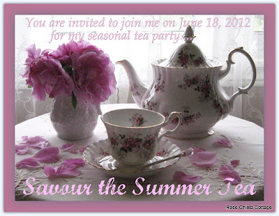 I am happy to see all your tea things, whether you have shared them before or not. This tea party is all about sharing your joy of tea time and any thoughts you might have on the subject. And for the summer months, I would love to see your teacups and teapots indoors as well as out in the garden, at the beach, on a park bench, etc... Also I would enjoy seeing your teacup and teapot crafts as well as recipes and any stories you might have to share about tea time. So, let's have fun this summer with our teas. Get out there and be as creative, fancy, or as laid back as you wish!