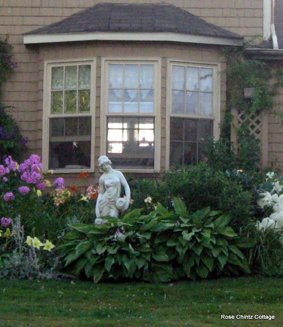 The little cottage garden I am about to share with you is called Martha's Garden, named for the lovely lady statue which is the centerpiece of it.