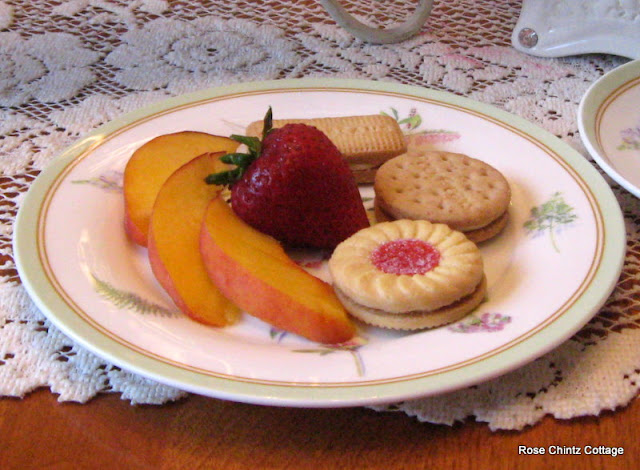 Fresh fruit and a cookie make a nice snack for a simple cuppa tea.