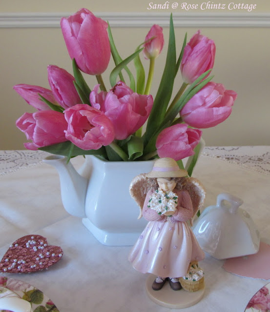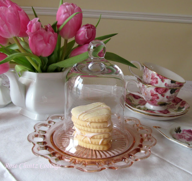 With tea, one must have a cookie to enjoy with it. Everything looks magical under glass, including cookies! Pink tulips lend themselves beautifully, don't you think?