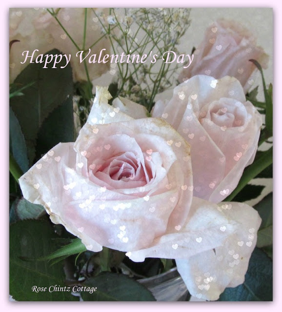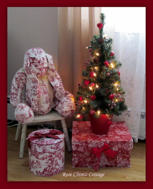 Since I am barely moving these days, I didn't do much in the way of decorating for Valentines Day. I did however set up this wee vignette and lit the tree.