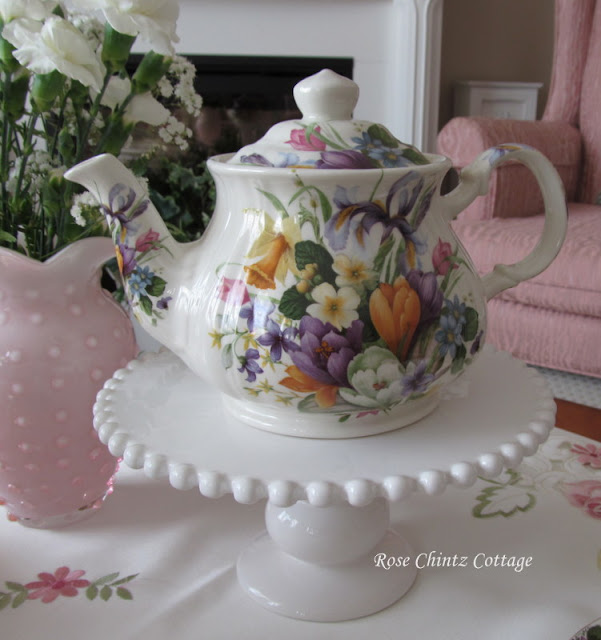 I am using my Sadler teapot today which I won in a giveaway from my friend Wendy at Once Upon A Rose Garden. It is covered with lovely Spring flowers and appropriately, is called Spring Crocus.