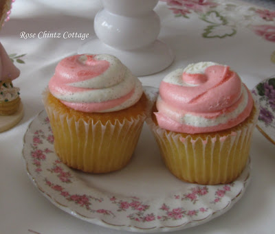 My Serena teacup holds one of the fairy cakes. I must confess that Hubby had to get the cakes at the grocery store because I'm still not up to baking.