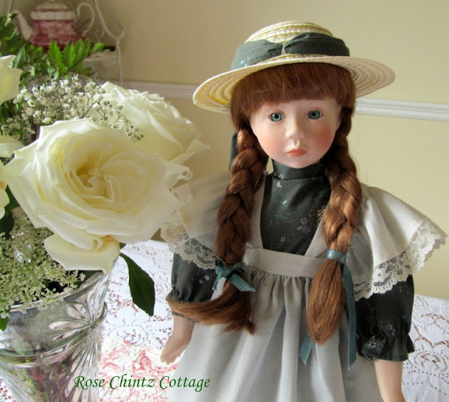 My Anne doll was the last Christmas present my father ever gifted me with and I treasure her. Her red hair is braided and she wears her straw hat, a sweet pinafore, pantaloons, and black shoes.