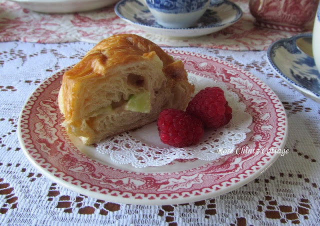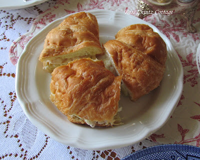Would you care for a sandwich? I have made chicken salad stuffed croissants.