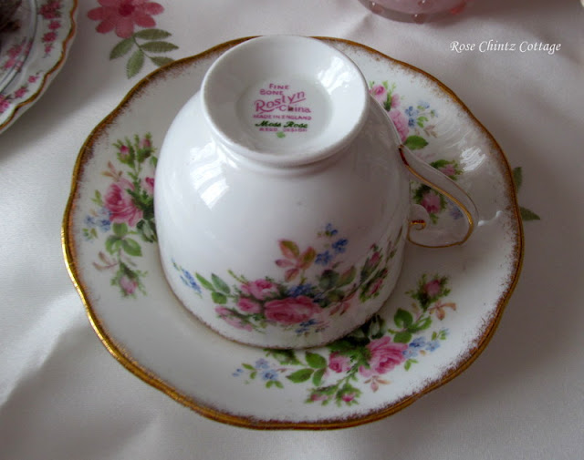 A few months ago, Nancy @ Two Cottages and Tea sent me one of her teacups because I had the mate to it and she wanted me to have it. Unfortunately I couldn't find any info on it.