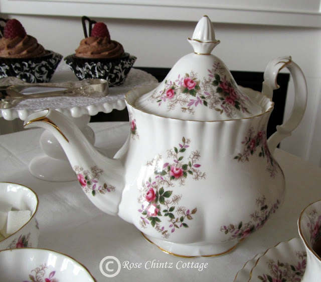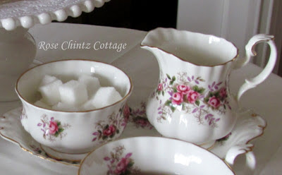 At least once a day, Hubby and I enjoy having tea together and today I am using my Lavender Rose tea set. Hubby prefers a mug but I will set the tea table with teacups just for my post today.