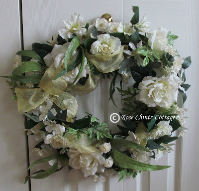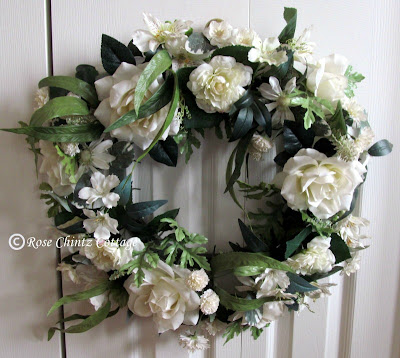 Our home sits in a very windy spot and I can't hang the type of wreath on my front door that I would like because the wind would destroy it in no time. So I have this old floral wreath which I have been using the past few years. I simply change it up every year.