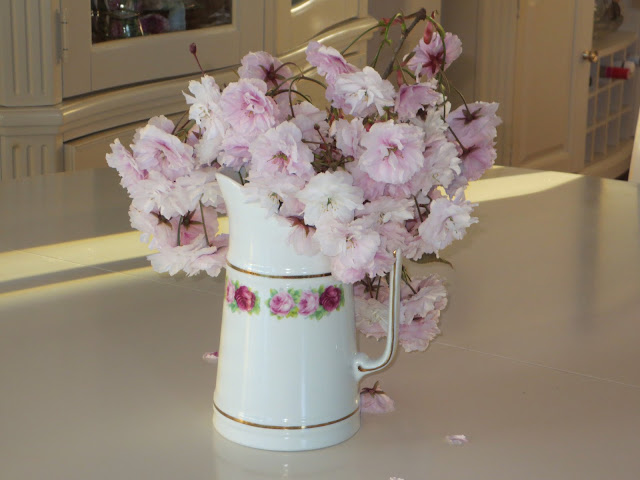 Karen @ Karen's Cottage and Castle shared some scrumptious cherry blossoms fresh off her tree and filled this wonderful Old English Roses pitcher with them. Can you imagine the scent!