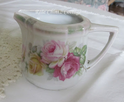 I found this little creamer at another antique shop. It is made in Bavaria and has a small chip in the rim.