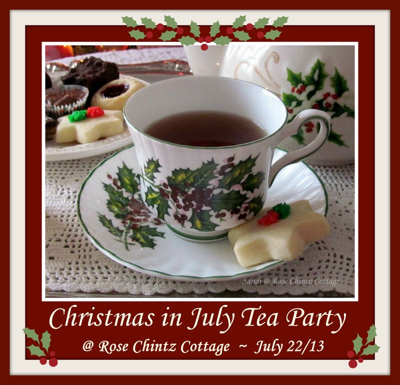 Let's do a Christmas in July Tea Party on July 22. I even made a button for you which you are welcome to use in your post that week.