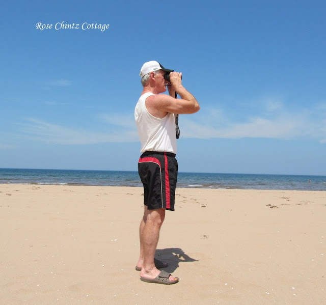 Hubby always has binoculars with him so he won't miss anything. We enjoy watching the jets fly in over the water and we wonder who might be on that plane coming to visit our fair Island.