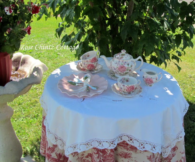 This week I set a tea out on the lawn beneath our maple tree. I used my treasured Johnson Bros. Rose Chintz china and it was a perfect day filled with birdsong!