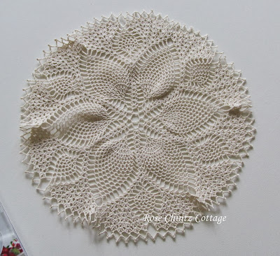 A few weeks ago my niece crocheted this fifteen inch doilie for me called Pineapple Blossom. Isn't it pretty!