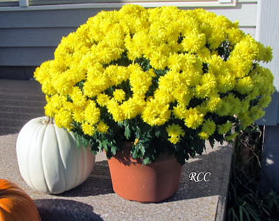 And there is a pot of yellow mums and some pumpkins on the front steps as well as a big pumpkin by the side door steps.