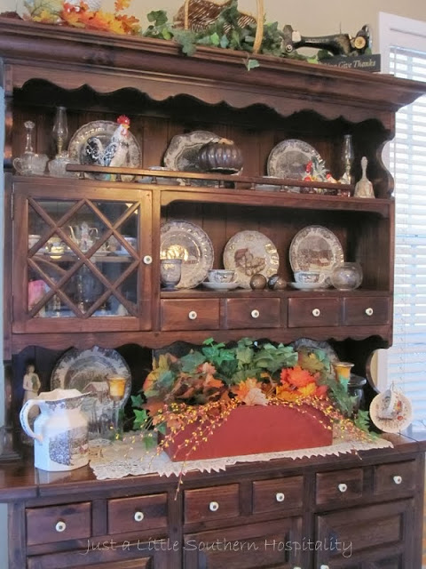 Jocelyn @ Just A Little Southern Hospitality shared her wonderful hutch filled with her lovely Friendly Village china.
