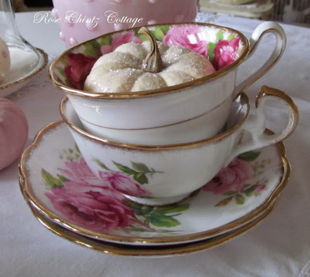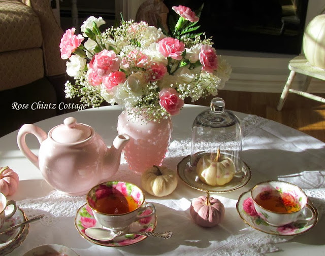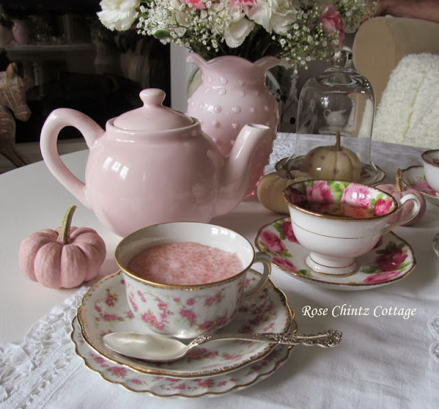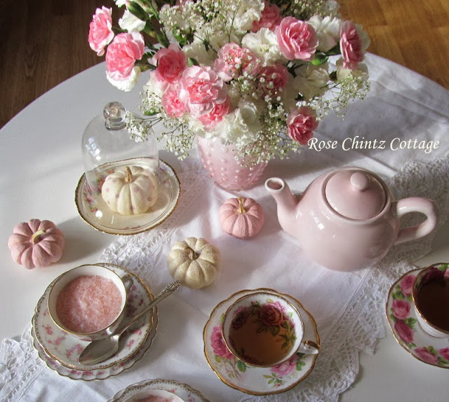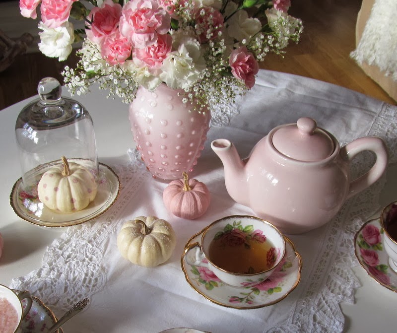 For my tea today, I am using pink again. Pink tea things, pink pumpkins, and even a pink dessert.