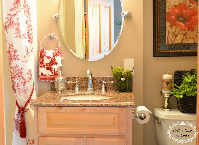 And Poppy @ With a Dash of Color shared her fabulous French Country bathroom. Just beautiful!