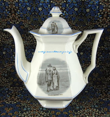Ruth @ Antiques and Teacups shared a charming teapot made by Staffordshire. It is adorned with transferware scenes from the famous poem by Henry Wadsworth Longfellow, "The Courtship of Miles Standish." Isn't it lovely!