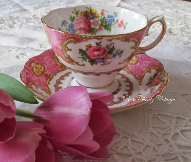 I shared this beautiful Royal Albert Lady Carlyle teacup at my tea party this week. Isn't she lovely?
