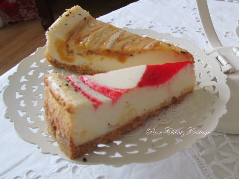 Accompanied by Apple & caramel and Strawberry swirl cheesecake from the bakery.