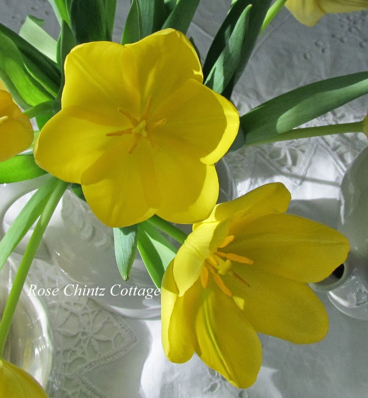 My sweet hubby arrived home from work with these bright yellow tulips. Tulips remind me of springtime and if you're anxiously awaiting Spring like I am, then you know there are only about seven and a half weeks to go!