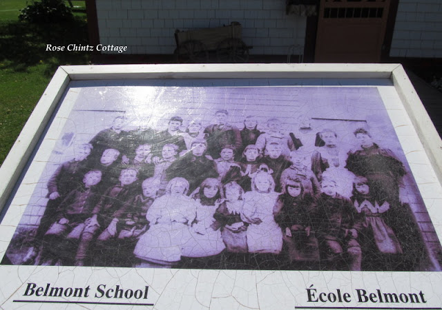 To the left of the station is the original Belmont School house where LM Montgomery taught her students in the years 1896-1897. These are her students with Montgomery on the right.